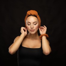The printed turbans signed Ovea are limited editions. The Ovea turban, with its luxurious simplicity and carefully crafted finish, fits the shape of the head, no matter its size, ensuring comfort and convenience, and is perfect for all face shapes. The cross side of the turban can be placed in front or back according to your choice. This accessory can transforms your look. Also you can from an ordinary to an extraordinary look with matching scrunchie. Our turbans are handmade in Italy and Morocco, we opt for premium quality fabrics from haute couture suppliers in Europe.