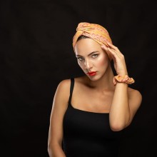 The majority of Ovea turbans are limited editions, a few solid colors are returning to stock with a new look. Simple and luxury turban with a good finish, it conforms to the shape of the head whatever its size, ensuring comfort and is perfect for all face shapes. The cross side of the turban can be placed in front or back according to your choice. This accessory can transforms your look. Also you can from an ordinary to an extraordinary look with matching scrunchie.